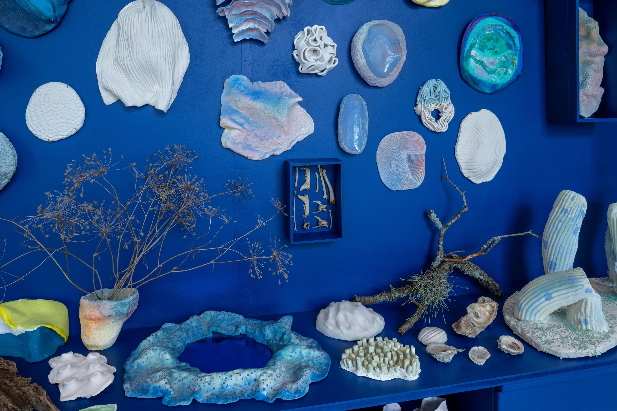 An installation of studio sculptures and found objects from the natural world. Created as a collection of artifacts that catalogue the artist's relationship to the local environment.